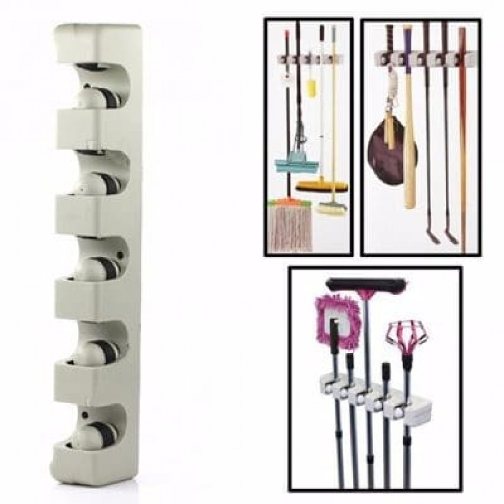 - Perfect for brooms, mops, pool sticks, tennis rackets, hammers, rakes, and lots more, 5 slots hold 7lbs of weight each, so heavier items such as shovels can be held securely