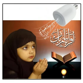 The Quran LED Lamp with Speaker is a unique, stylish, and practical addition to your home. The LED bulb emits white light at 3000K color temperature, providing excellent illumination to your space. This device is fitted with a speaker that allows you to listen to the Quran. You can easily use it from Ayat to Aya, and play tafseer