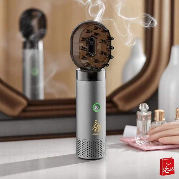 • 🌸 Bakhoor Diffuser – Releases fragrant smoke into your hair during combing